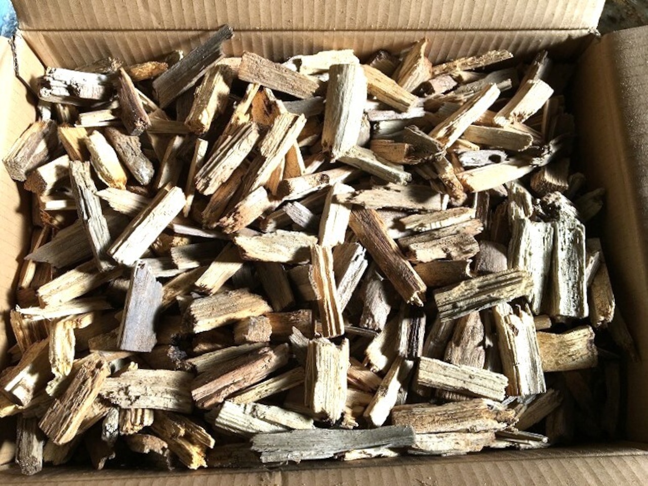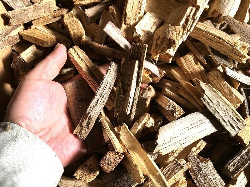 ・ブリードで使用した産卵材を材割した際に出た木片を適当な大きさにしたもので、サイズ感は画像2枚目をご参照ください。量的には、100サイズの箱に一杯詰めた感じです。